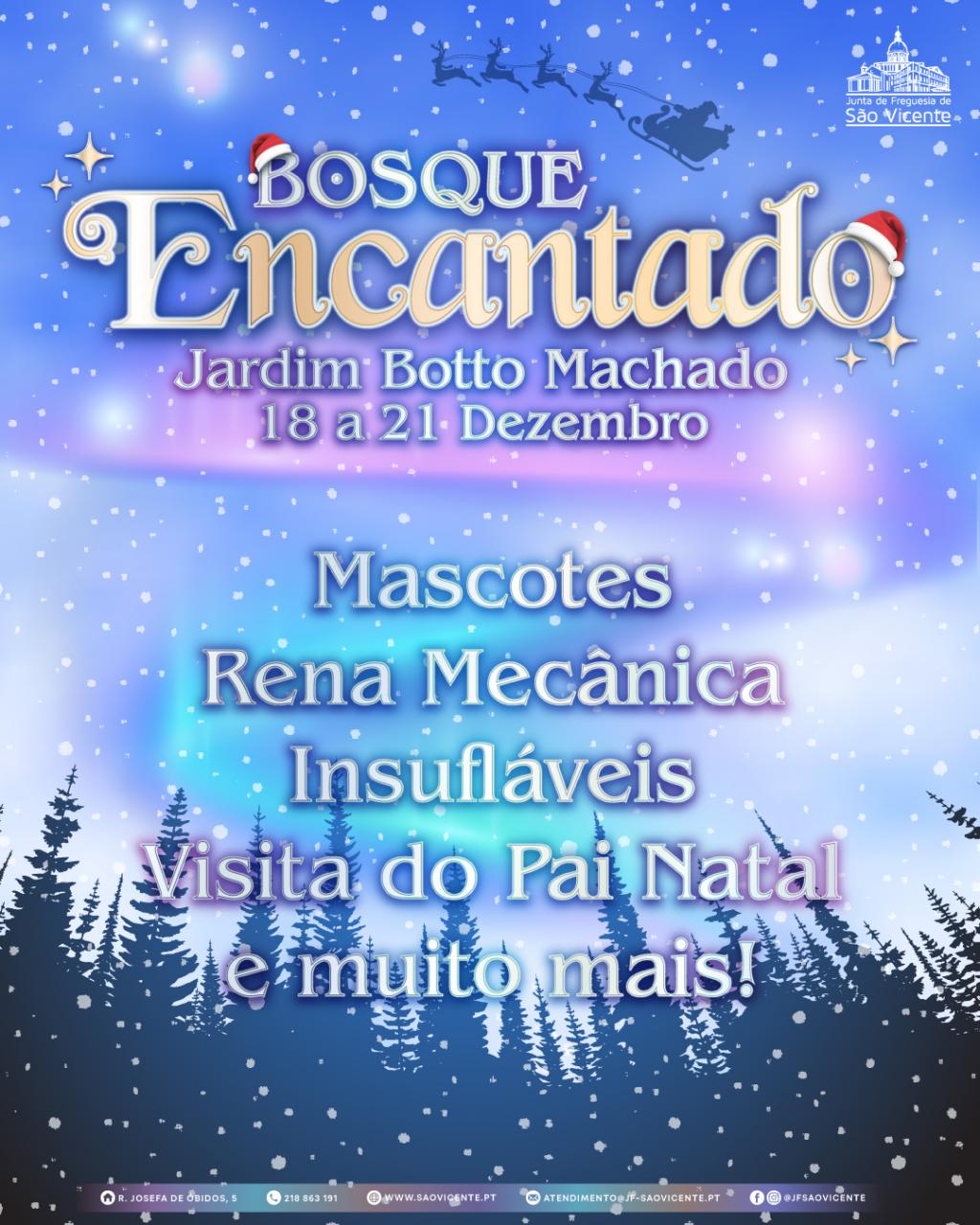 De 18 a 21 de dezembro, o Jardim Botto Machado transforma-se no ‘Bosque Encantado’, onde poderás encontrar o Pai Natal, mascotes, uma rena mecânica, insufláveis, ateliers, contos e lendas, coros de Natal e jogos para todas as idades.