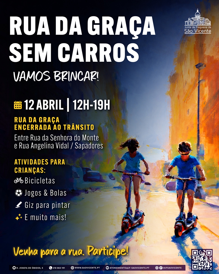No dia 12 de abril, entre as 12h e as 19h, a Rua da Graça transforma-se num espaço de brincadeira e convívio para toda a família, em segurança.