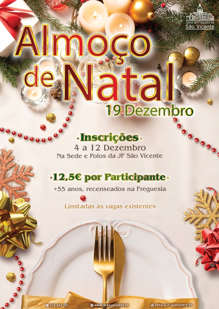 A Junta de Freguesia de São Vicente vai realizar o habitual almoço de natal da freguesia, no dia 19 de dezembro.