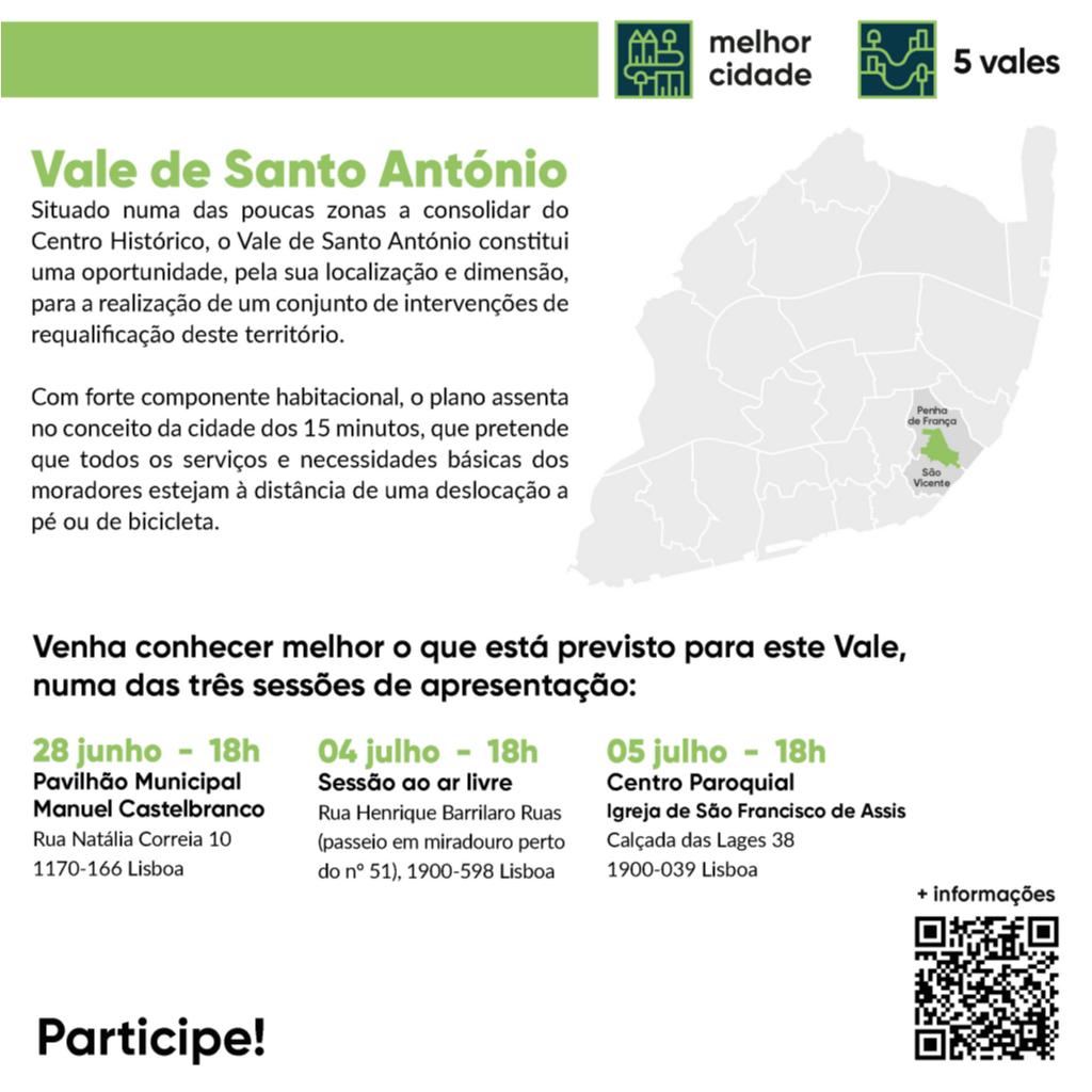 Venha conhecer o Plano de Urbanização do Vale de Santo António numa das 3 sessões públicas de apresentação previstas. A próxima sessão é já na próxima sexta-feira, dia 28 de junho. Participe!